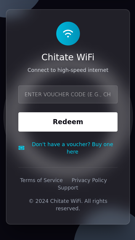Simple, reliable Wi-Fi login portal for businesses. Manage users, create vouchers, and control access with ease.